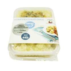 Мясо по-французски с рисом/салат оливье/хлеб 445гр СПб